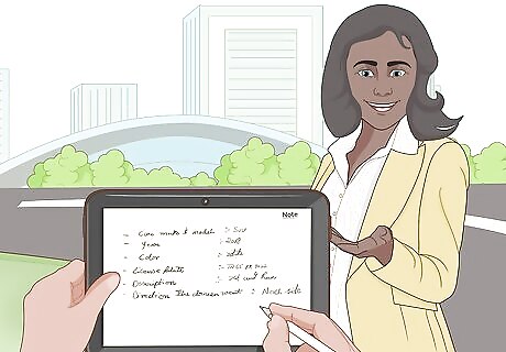 Gather information about the driver. You might have caught a glimpse of the driver as they pulled away. Try to get as much information as possible, including the following: car make and model year color license plate number description of the driver direction the driver was headed