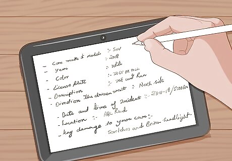 Write down your own memories. If you were in the car, then document what happened. Be as detailed as possible. You might not have much information to write down but, at a minimum, record the following: date and time of the incident location any damage to your car