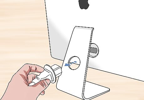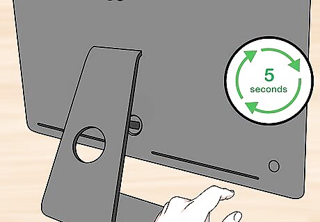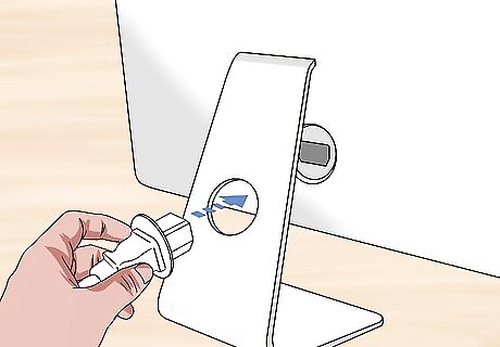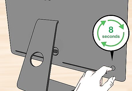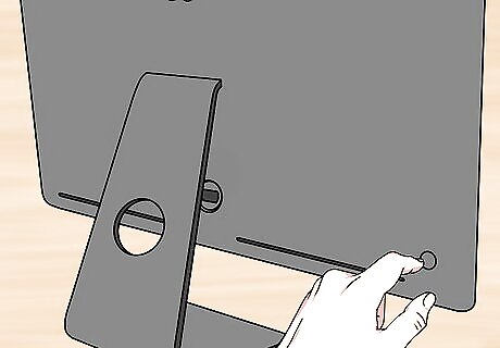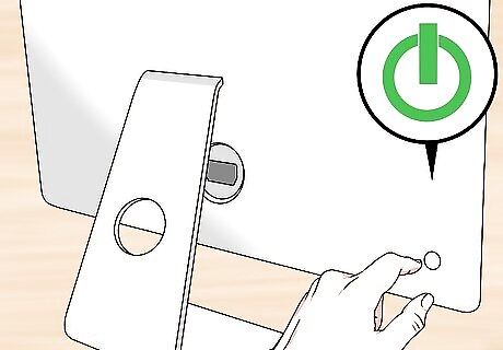 Plug the computer back in. Reattach the power cord to the back of the monitor and plug it into a power outlet.