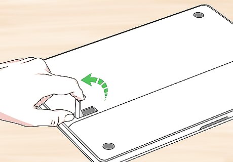 Remove the battery. Locate the latches on each side of the battery and slide them up. Lift the battery out. Make sure your Notebook is completely shut down before removing the battery.
