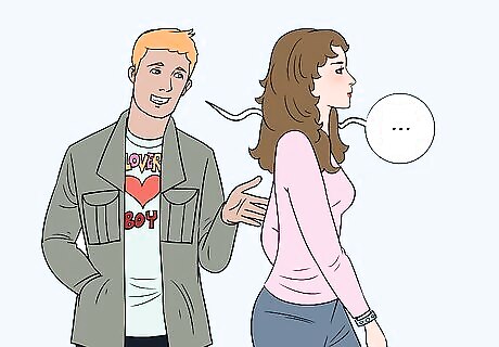 Walk away from the situation if you feel uncomfortable. If a pick up line makes you feel uncomfortable or threatened, you can always remove yourself from the area. This should get the message across to the person that used the pick up line that their advances are unwanted. If you ever feel unsafe or like you might be in danger, contact your local authorities right away.