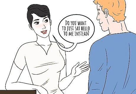 Ask them to try again without a pick up line if you're interested in talking to them. Cheesy pick up lines are usually used by people who are nervous and want to talk to you but don't know how. If you do want to talk to the person who told you a pick up line, but you’d like them to just speak to you normally, say something like, “Sorry, I don’t like pick up lines. Do you want to just say hello to me instead?” If the person using the pick up line was genuinely trying to get to know you, they might even appreciate this conversation opener.