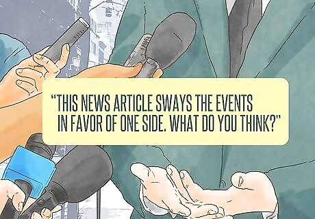 Share news stories about the tragedy. Another way to respond to the tragedy on social media is share news stories, media coverage, videos, or other posts about the tragedy. Choose stories that reflect how you feel, or post a story you disagree with and add your own opinions to it. Posting these stories gives you a starting point for discussion about the event. You can start by sharing your opinion about the media coverage, then responding to those who comment. You may say, "This is a great article about what happened" or "This article sways the events in favor of one side. What do you think?"