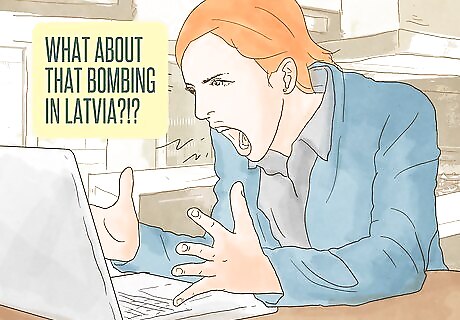 Use caution when pointing out other tragedies people have ignored. A common response to tragedy is to respond to posts and update statuses angrily because people are posting and showing support for this tragedy but not another tragedy. You can air your feelings to bring awareness to other similar tragedies, but don’t belittle or diminish the emotional impact of the current tragedy. For example, when a bombing happens in a place that gets international attention, people get on social media to make angry posts about other places that have been bombed with no exposure. This also happens when victims of violent crimes are talked about nationwide, but other victims of the same crime get no coverage. When spreading awareness of other tragedies, be sensitive to each tragedy.