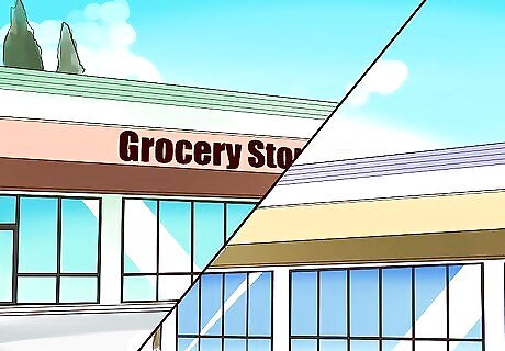 Hit up multiple stores. Different stores have different strengths, and you should use this to your advantage. If you shop a few times a week, the cost of gas can add up driving all over town, but this doesn't apply when you're shopping only once a month. Try utilizing a big discount store for bulk items and a grocery store for everything else. You can also go to a farmers market during peak seasons for inexpensive produce. Plan on going to two or three stores. Avoid going to more than four stores. Plan to spend about two to four total hours shopping.
