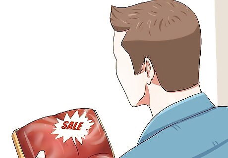 Accumulate coupons and local store ads. Look at the grocery store ads for stores you frequent, either looking online or going to the store for a savings book. See what items are going to be on sale during the time you are going to shop, and update your meal plans if necessary. You can organize coupons you don't use for a given month in a booklet to use another month; just be sure to check expiration dates before planning on using them.