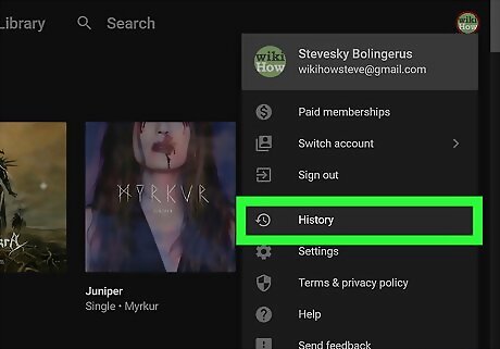 This wikiHow teaches you how to view your YouTube Music history on PC or Mac. You can view your YouTube Music history in the account menu on the website.