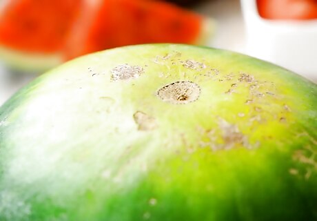 Look for the field spot. The underside of the watermelon should have a creamy yellow spot, known as the field spot. This is where the melon sat on the ground and ripened in the sun, so the darker it is the better! This one is no wives' tale. If the field spot is white, or even nonexistent, this probably means that the watermelon was picked too soon, and will not be ripe.