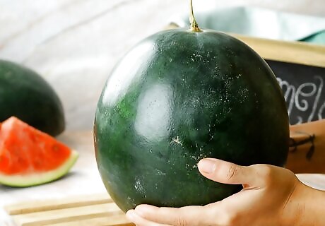 Look for uniform shape. Look for a firm, symmetrical watermelon free from bruises, cuts or dents. If the watermelon has any lumps or bumps, this may mean that it received irregular amounts of sunshine or water during growing, causing dryness or inconsistency.