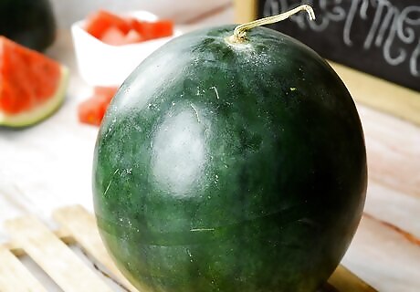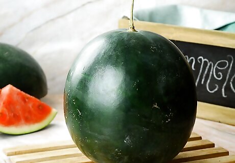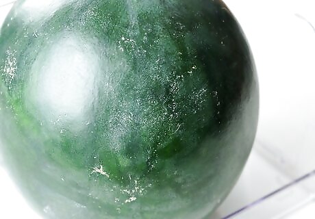 Inspect the color. A perfect, ripe watermelon should be dark green in color and dull in appearance, rather than shiny. A shiny watermelon will usually be under ripe.