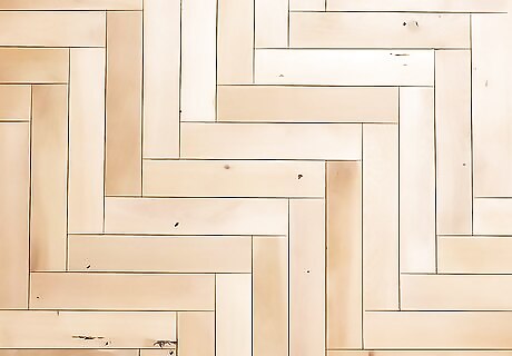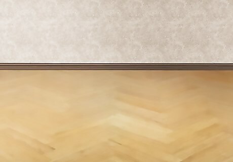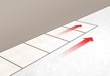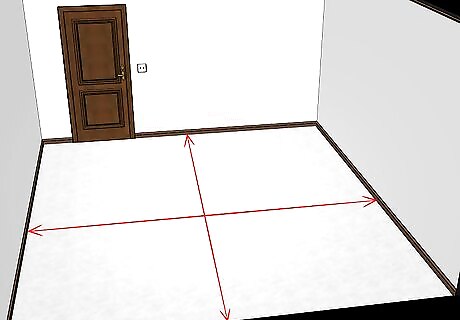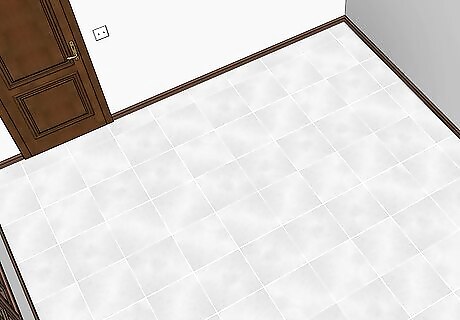 Arrange the tiles flush against the wall to make a room look orderly. For simple and quick installation, plan on installing your tiles in a straight row from one end of the room to the other. You won’t have to worry about cutting multiple tiles to fit at an angle, and the floor will look very neat and organized. A plain floor gives you a lot of creative space to decorate with art and furniture in the living room.