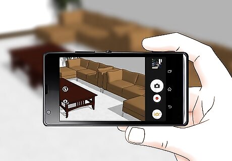 Take pictures of your furniture and paint to see how things go together. Snap a few photos of your living room before you head out to the store. Take into account the trim, doors, curtains, furniture, and artwork that you have in the living room. It’ll still be hard to tell exactly how things will look together, but having the photos should help you trim down your options. If you have fabric or paint swatches from when you painted or bought new furniture, take them along with you, too. Make sure to bring the pictures of the room along with you when you go shopping for tile.