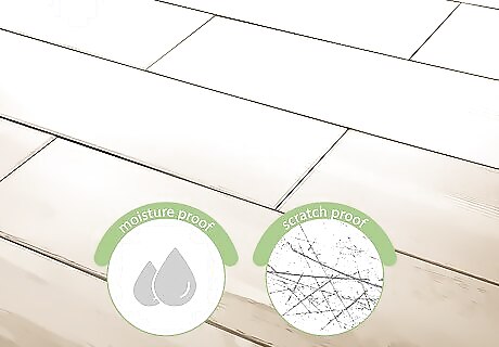 Look into ceramic wood if you like the look of hardwood floors. Hardwood floors are great, but they scratch easily and can be hard to maintain. If you like the look but don’t want the hassle, choose ceramic wood—it’s really durable and is resistant to both moisture and scratching, which means your floors will look nice for a really long time. You can buy ceramic wood that imitates the look of almost any kind of species of tree. Keep in mind that real wood floors have a softer, warmer feel than ceramic wood, which can feel hard and cold. However, ceramic wood floors are easier to clean than real wood floors.