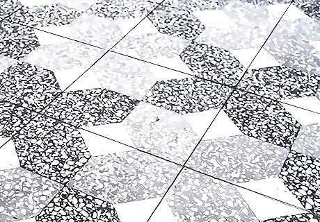 Decide on terrazzo tile for a shiny, long-lasting floor. Terrazzo is made up of chips from different materials, like marble, quartz, granite, and glass. Those materials are ground up and mixed together, and then they’re polished to give the terrazzo its shiny finish. The biggest concern with terrazzo is that it can be extremely slippery so it might not be the best option if you have kids or elderly family members living at home. Terrazzo is also really expensive, sometimes costing as much as $40 per square foot.