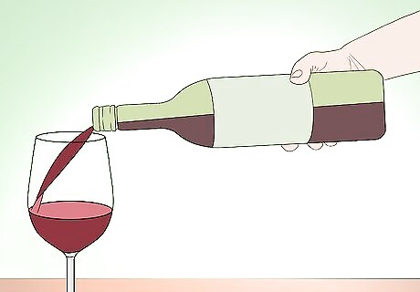 Pour a standard wine serving. A standard wine pour is about 5 to 6 ounces (150 to 180ml). If you want a standard serving every time, measure 5 to 6 ounces of water into a glass, dump the water out, and then pour in wine to where the water was. However, for your Thanksgiving feast, feel free to pour your wine as liberally as you would like. Twist the bottle away from you to prevent any dripping. There are usually five 5 to 6-ounce servings in a bottle.