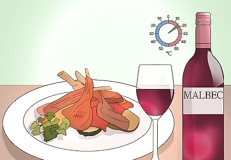 Offer your guests a malbec if you are serving lamb. Because lamb has a less pronounced flavor than other meats, it can be overwhelmed if paired with a full-flavored wine. Try to serve a wine that has a delicate flavor, such as a malbec or a syrah. You should also consider the sauce that you serve with your lamb and pair your wine accordingly. For a traditional Thanksgiving brown gravy, consider serving a bordeaux or a barbera. Serve your stronger red wines between 60°F/15°C and 65°F/18°C