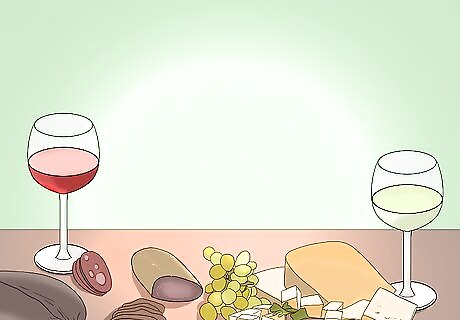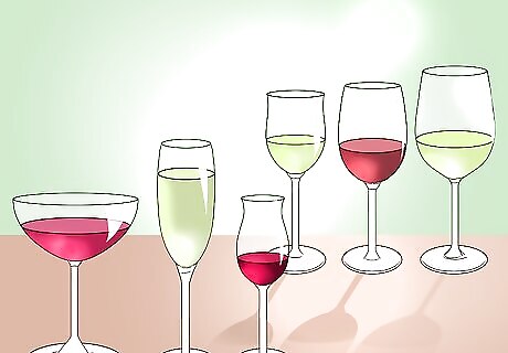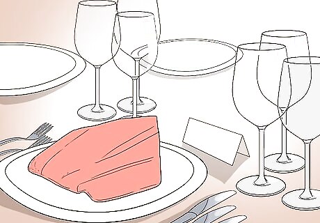 Set the table. When you are setting the table for your Thanksgiving feast, you will want to be sure to place the wine glass to the top right of the dinner plate and next to the water glass. If you want to make sure that your guests get the correct glass for their wine, consider offering your guests wine when they arrive and then allow them to keep their wine glass for dinner. This sign of hospitality will keep you from doing any guess work. Avoid setting out more than two glasses. Too many drinks can overcrowd your dining area and lead to spills.