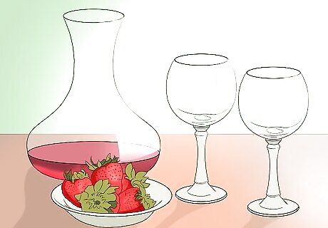 Get some wine glasses. In order to get the best tasting experience from your wine, you will want to consider using glasses of a certain shape. For a white wine, use a glass with a smaller bowl that helps maintain a cool temperature and preserves the wine’s aromas. For a red wine, you will want a glass with a larger bowl that helps deliver the aroma and limits the burn of the alcohol in the wine. However, if you are not particular about how your wine tastes, you can serve it in any kind of cup you want.