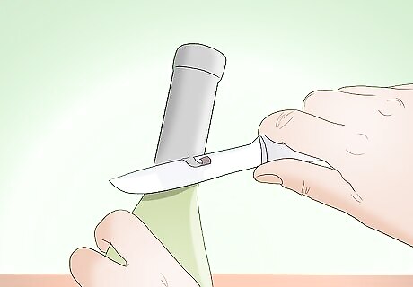 Cut the foil. For your Thanksgiving dinner, you can simply remove the foil or try to cut it in a way that enhances the visual appeal of the bottle. If you intend to keep the wine on the table, use foil cutters to cut the foil at the top of the lip. This is the method typically used when presenting wine to a group of people where it will be displayed. Sommeliers tend to cut at the bottom of the lip. This is a tradition that goes back to when the foil was made of lead and sommeliers wanted to keep the metal out of wine.