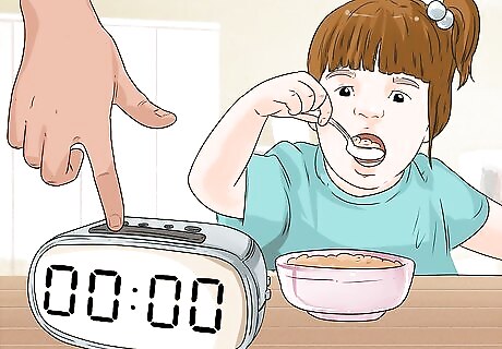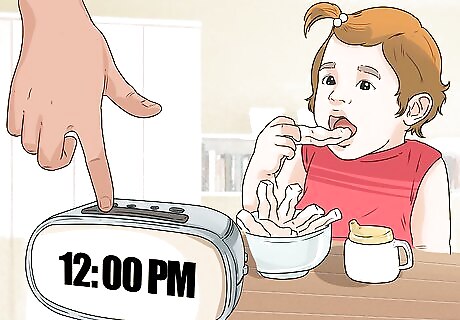 Include a breakfast time. Depending on the needs of your toddler, you may actually schedule breakfast time before they brush their teeth and get dressed, as some toddlers wake up hungry. You can decide to feed your toddler first so they are more cooperative when it comes time to get dressed and brush their teeth. Try to keep their breakfast light and easy to make. Allow for 30 minutes for your toddler to eat their breakfast. You want to keep the breakfast time short so your toddler has time to play in the late morning.