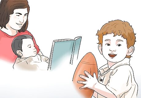 Add more play time with other toddlers. As your toddler gets older and reaches 2 years of age, they should start to play with other toddlers regularly. They may play with other children their age in a group or one on one. You should arrange for play dates during your toddler’s play times so they are spending time with other children. You may try to include a variety of activities with other children in your toddler’s schedule. Make time for big group activities, small group activities, and one one one play with other children their age. This will ensure they learn the value of friendship, community, and getting along with others.