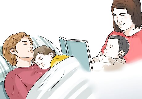 Include a before bed routine. It can be tricky to get your toddler to go to bed. But if you stick to a consistent day schedule and establish a before bed routine, your toddler may be more apt to go to bed. You should try to stick to the same before bed routine and the same bedtime every night. Most toddlers should be in bed by 8 pm to ensure they get enough sleep. Include a brief playtime after dinner and allow your toddler to do something relaxing, like read a book or watch a favorite television show. You can also include a nighttime snack like a warm glass of milk. You may also include time for a warm bath before bed. Your toddler should also get into their pajamas and brush their teeth. The final step in your bedtime routine might be singing a quiet song in bed or reading a bedtime story. You may also allow your toddler to get into bed with a favorite toy or a comfort blanket. Having a security object in bed, such as a toy, can help your toddler fall asleep.