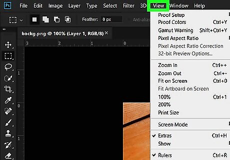 Make the screen rulers visible. If you don’t see rulers at the top and side of the workspace, click the View menu and select Rulers to enable them. This makes it easy to place guides, as well as objects in general.