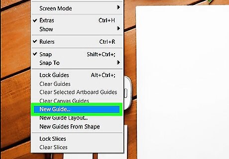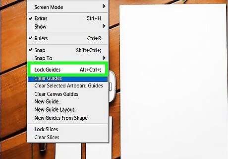 Lock the guides into place (optional). If you don’t want to lose your guide lines, you may want to lock them into place. To do this, click the View menu and select Lock Guides. If you need to move or remove guides after locking them, you’ll have to unlock them first. Just select Unlock Guides from the View menu.