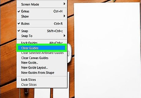 Remove a guide that’s not needed. To remove one guide, just drag it anywhere outside of the image you’re working on. To remove all guides at once, click the View menu and select Clear guides.
