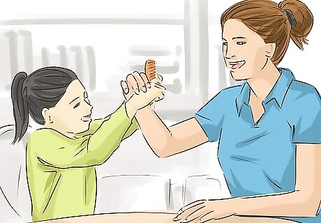 Focus on building upper body strength and stability. Many children with CP are limited by a lack of strength and stability in the upper body. Occupational therapy focuses on improving these areas, allowing your child to perform tasks such as dressing themselves or pouring water from a pitcher into a glass. Ask your child’s occupational therapist about setting specific strength and stability goals. For example, “Olivia has a hard time brushing her hair because she can’t raise her arms very high. What can we do to help her with that?”