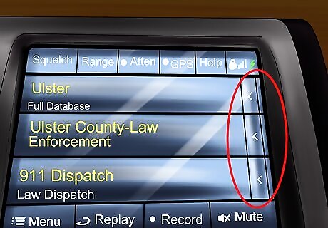 Set the squelch. Although Uniden sets their squelch rather low, to get more transmissions, turn this up to a medium level. Touch the Squelch button, then press the up and down buttons (that were originally used to turn the volume up and down) until the orange bar on the screen is about half-way up. As soon as that is at that point, leave the screen go and it will set from there and the box will go away.