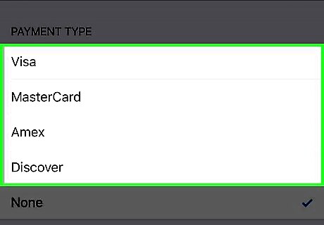 Select a payment type. Valid options include the following: Visa MasterCard Amex Discover
