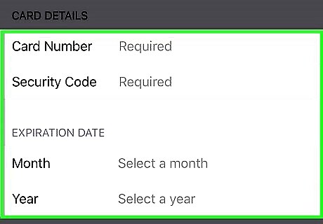 Scroll to the "Card Details" section and enter your card details. These include the following: Your card number Your card's security code Your card's expiration date