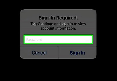 Type in your Apple ID password. If you have Touch ID enabled, you can use your fingerprint to view your account settings here.