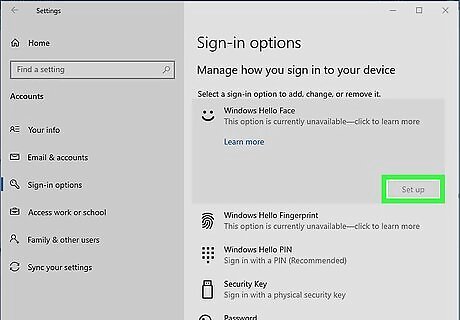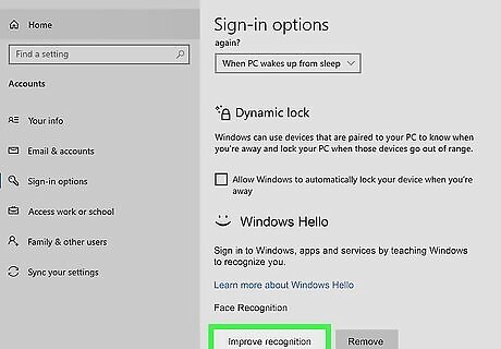 Choose "Set up" or "Improve recognition" under Face sign-in.
