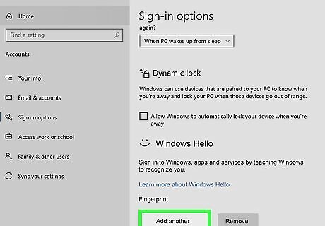 Choose "Set up" or "Add another" under Fingerprint sign-in.