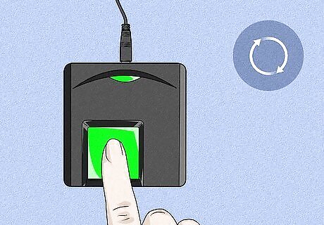 Scan your fingerprint. The fingerprint will light up and indicate to you which parts of your fingerprint still needs to be read.