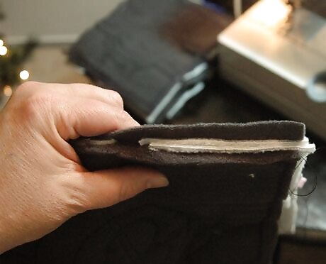 Trim away the edges neatly, taking care not to nick the seam or bottom, dark grey, layer.