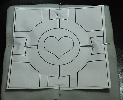 Obtain your needed materials. (See "Things You'll Need" listed below.) Copy or paste the JPG pattern below into a word processor for easier resizing and printing.Pattern for the plush companion cube.