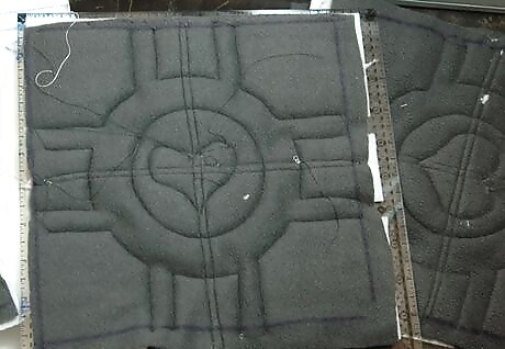 Turn the cube right side out and begin stuffing by placing the foam sheets inside along each flat surface. Depending on the foam used, you may need to glue or sew the foam pieces together along their edges before stuffing to prevent shape deformation.
