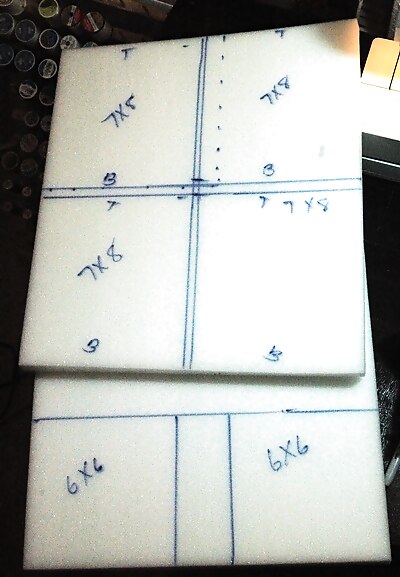 Cut the foam sheets for the sides. Notice that you cannot simply cut six equal pieces. You must cut two squares and 4 rectangles to cover the cube neatly. In the case of an 8 inch (20cm) cube, assuming that your foam is one inch (2 cm) thick, the cube's sides would be: four 8"x7" (20cm x 17.5cm) rectangles and two 6" (15cm) squares. Measure twice and be certain of your measurements before you cut the foam to prevent frustration later. The foam sheets are not "strictly" necessary, but they prevent your cube from taking on a very rounded look when stuffed later on. Adjust your measurements if you are using a thicker foam sheet or a foam cube as a base.