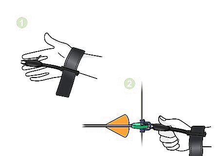 Attach your mechanical release to the bowstring where the arrow attaches. If you prefer to pull and release the string with your fingers, skip this step. However, most compound hunters used the mechanical release. Attach the release to your wrist as instructed, then simply snap the jaws of the release around the D-loop. Keep your index finger behind the trigger to prevent it from releasing accidentally.