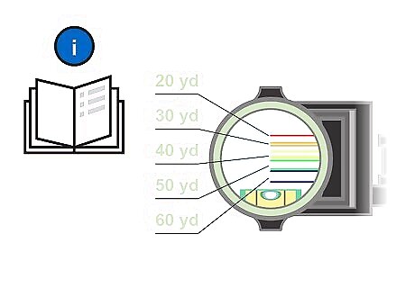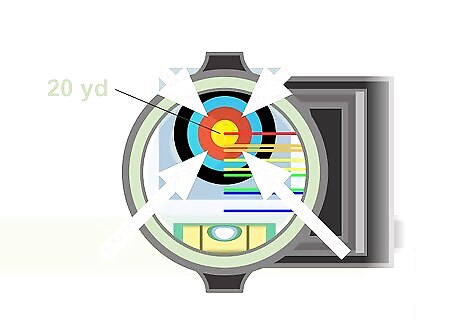 Understand your aiming sight helps you determine arrow distance. The line of vertical dots on the sight seem intimidating at first, but they are there to help you determine shooting distance. The top dot is where you aim if the target is 20 yards away. This is true for every single compound bow. The rest of the dots are for other distances -- commonly 30, 40, and 50 yards -- but different bows will have different distances on each sight. Many of them are adjustable as well, so check out the manual for your compound bow if you're confused.