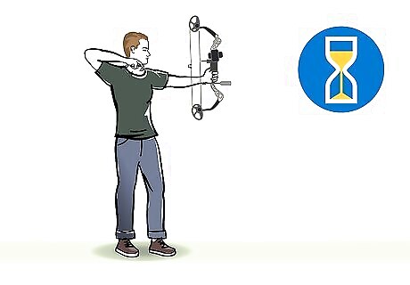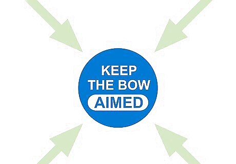 Hold your bow in line with the target after the shot. A big mistake of beginners is immediately lowering the bow after firing the shot. Just like a golfer must keep their head down through the swing to keep their body aligned, you should keep your bow up through the entire shot to ensure you don't pull off target at the last moment. Focus on keeping the bow on target for 1-2 seconds after firing.