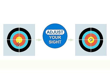 Adjust your sight if your form feels good but your accuracy is still lacking. You'll see that over time your arrows will start coming together into a tight grouping. When all shot arrows stay close together, but not in the center of the target, then you will need to adjust your sight. This is easily done, usually with the aid of some Allen keys. To adjust the sight, move the pins with the arrow. If you shoot to the left of center, move your sight to the left. Re-tighten the screws and try again, re-adjusting as necessary.