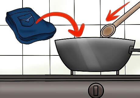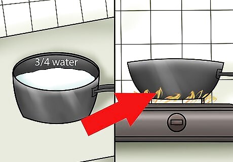 Boil water. Obtain a large pot and fill it ¾ of the way with water. Put the pot on the stove and bring it to a boil. Once the water is at a rolling boil, the jeans are ready to be put into the water.