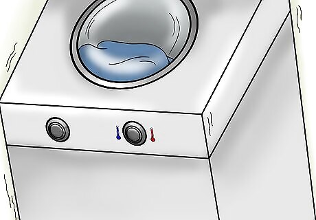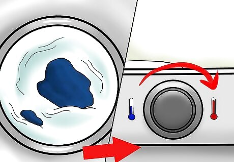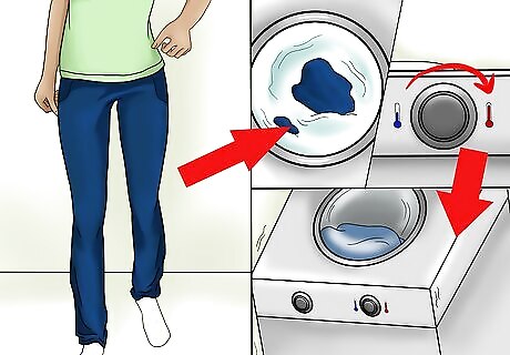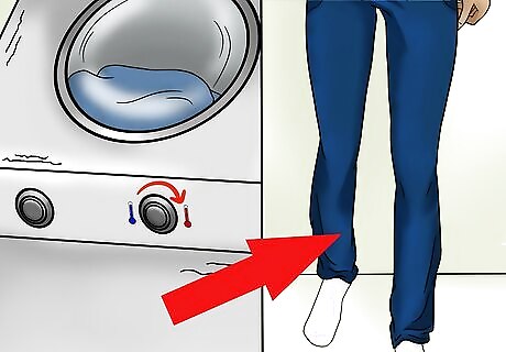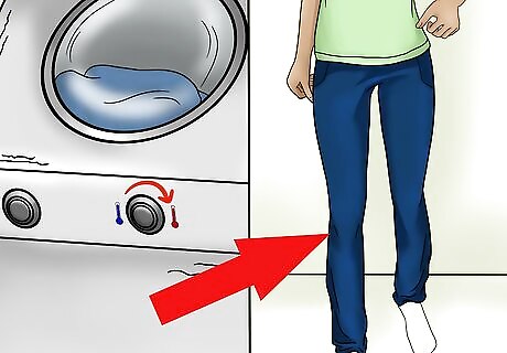 Dry your jeans with high heat. After washing the jeans, place the jeans in the dryer. Change the dryer settings so the jeans dry on the highest heat setting possible, and allow the jeans to dry for a complete cycle.