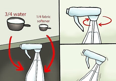 Make your shrinking spray. Combine together ¾ cup of warm or hot water with ¼ cup of fabric softener in a spray bottle. Close the top to the spray bottle, and shake the bottle to combine the mixture.