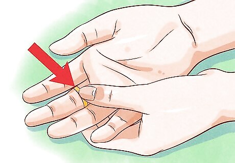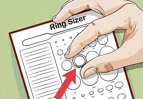 Choose a ring that you already own that fits well on your finger. Try on a few rings that you already have, and find one that fits well on the finger for which you're buying the ring. It should be snug, but not too tight, and you should be able to put it on and remove it easily. Try moving your arm around with the ring on to make sure it isn’t too loose. If you don’t have a ring that fits well, try a different method for measuring your ring size.Tip: Select a ring that you already own that goes on the same finger and has a band that is a similar width to the one that you want to order. A thicker band can sometimes give a tighter fit.