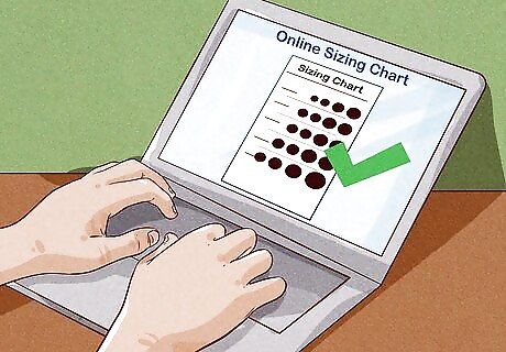 Consult a sizing chart to convert the measurement to a ring size. Look at a sizing chart online to see what size your measurement translate to. If possible, use the size chart that’s specific to the company that you’re purchasing from, since there can be slight variations in sizing between countries. If the site doesn’t have a size chart, use a standard size chart to find your size. Keep in mind that rings can usually be resized to about 2 sizes smaller or larger if needed.